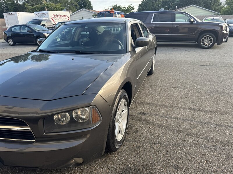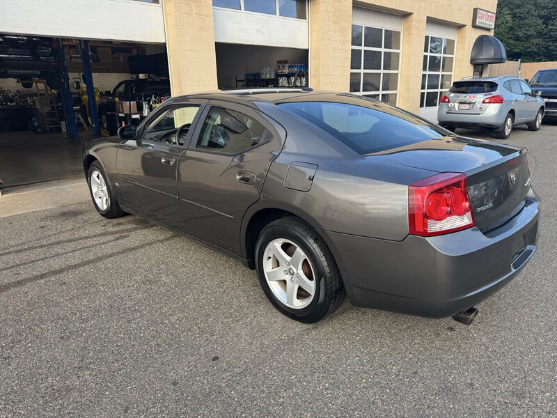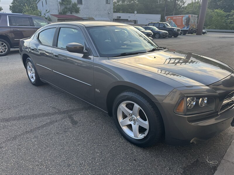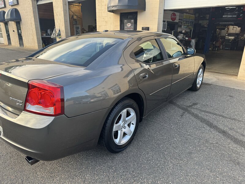 2010 Dodge Charger SXT powered by a 3.5L V6 (250 hp, 250 lb-ft) with a five-speed automatic transmission; exterior in Mineral Gray Metallic Clear Coat and Dark Slate Gray/Light Slate Gray cloth interior. Factory standard features include cloth seating, air conditioning, power windows and door locks, remote keyless entry, cruise control, tilt steering column, steering-wheel audio controls, AM/FM/CD/MP3 stereo with auxiliary input, 60/40 split-folding rear seat and center console with armrest. Safety and convenience equipment from the factory includes anti-lock brakes, traction control, electronic stability control, front side airbags and full-length side curtain airbags, and tire pressure monitoring. Vehicle is in excellent overall condition, with under 97,000 miles (averaging less than 6,000 miles per year) and EPA fuel economy of approximately 17 MPG city and 25 MPG highway.