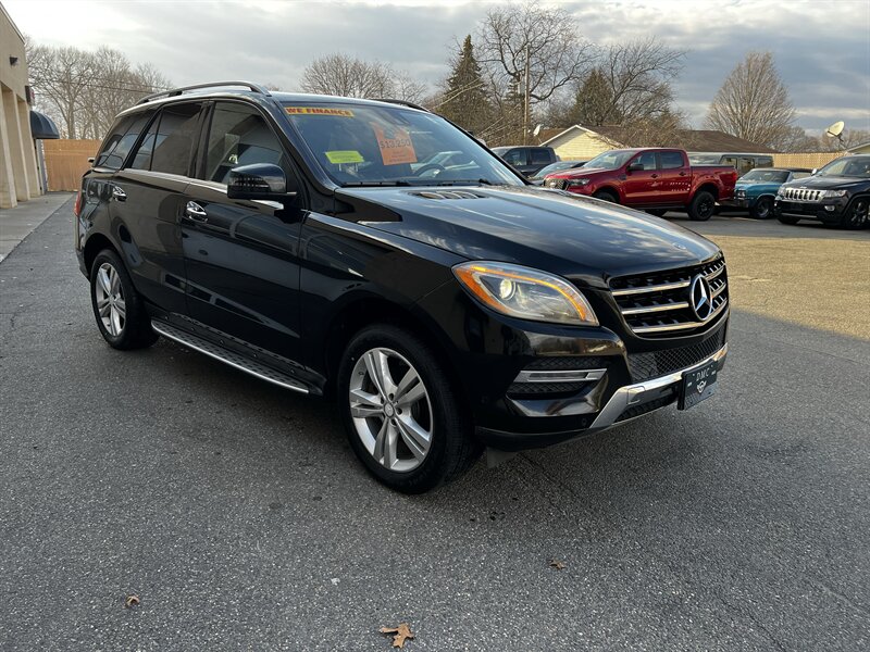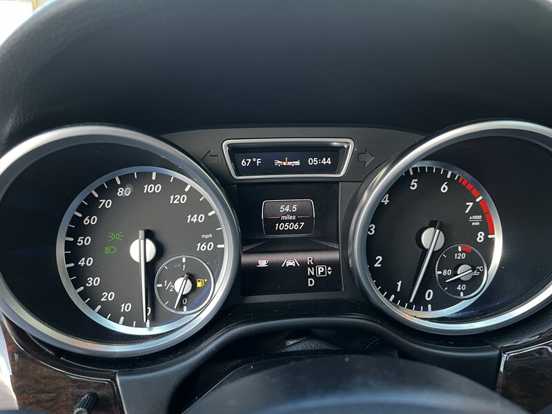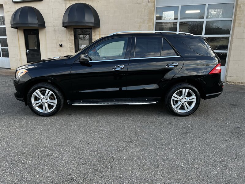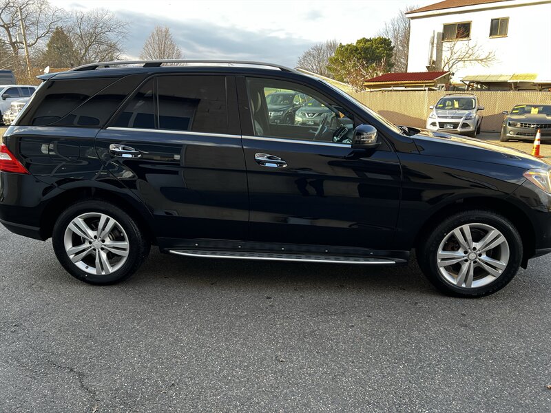 2013 Mercedes-Benz ML 350 4MATIC — powered by a smooth 3.5L V6 delivering 302 hp and 273 lb-ft, paired with 4MATIC all-wheel drive and a 7-speed automatic for confident, composed driving. This example includes the Driver Assistance, Lane Tracking, Lighting and Premium 1 packages and adds Harman/Kardon Logic7 sound, Burl Walnut trim, KEYLESS-GO, brushed aluminum running boards, PARKTRONIC with Active Parking Assist, black leather interior and a trailer hitch. Factory-standard Mercedes features include ABS with Brake Assist, Electronic Stability Program (ESP) and traction control, multiple airbags (front, side and curtain), power-adjustable front seats, automatic dual-zone climate control, power windows/locks/mirrors, cruise control, steering-wheel audio/Bluetooth controls, folding rear seats for versatile cargo space, and alloy wheels. Well-maintained with under 105,000 miles (averaging <8,000 miles/year) and in excellent overall condition — a refined, well-equipped SUV ready to go.