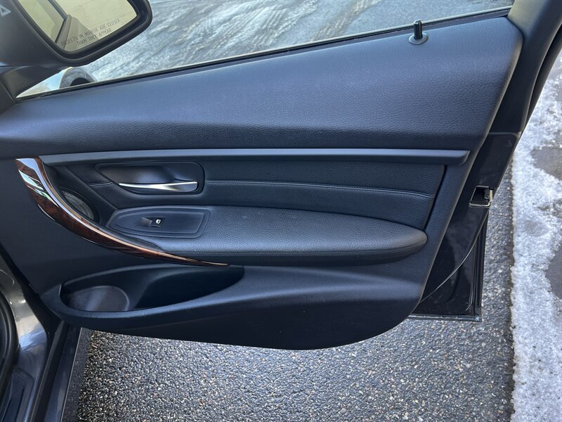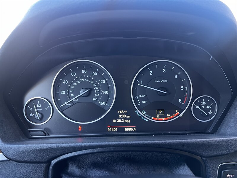 2014 BMW 328d xDrive with a 2.0L turbo diesel I4 producing 180 hp and 280 lb-ft of torque, paired with BMW’s xDrive all-wheel-drive system and a smooth automatic transmission. Factory equipment includes BMW iDrive infotainment with central controller, Bluetooth and USB/AUX inputs, dual-zone automatic climate control, power-adjustable front seats with lumbar support and black leather upholstery, 60/40 split-folding rear seat, power windows/locks and steering-wheel audio controls. Standard safety and convenience features include ABS, multiple airbags, stability and traction control, tire pressure monitoring and remote keyless entry. Exterior is gray, the vehicle is in excellent overall condition with under 91,000 miles (about <7,000 miles/year) and EPA-rated fuel economy of approximately 31 MPG city / 43 MPG highway.