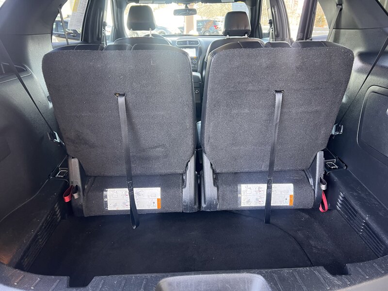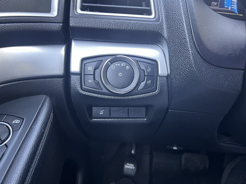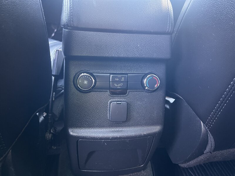 Factory-equipped features include: - Seating and cargo: three-row seating for up to seven with split-folding second and third rows for flexible cargo space; leather-trimmed Ebony Black seats. - Comfort and convenience: power-adjustable front seats, power windows and locks, remote keyless entry, cruise control, tilt/telescoping steering column, and available roof rails. - Climate and interior: multi-zone climate control and generous storage/utility compartments. - Infotainment and connectivity: Ford SYNC infotainment with Bluetooth hands-free phone and audio streaming, USB/AUX inputs, steering-wheel audio controls, and AM/FM audio. - Safety and driver aids: multiple airbags, anti-lock brakes, electronic stability and traction control systems, and a rearview camera for backing assistance. - Exterior and mechanical: alloy wheels, integrated running gear, and the factory 3.5L V6 drivetrain engineered for daily driving and towing versatility.