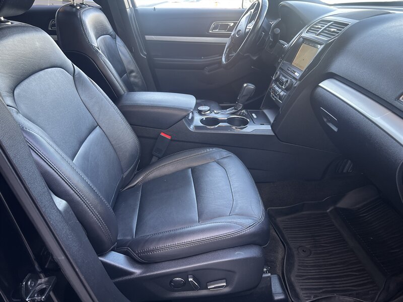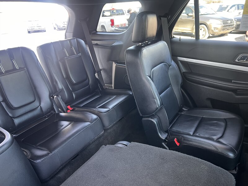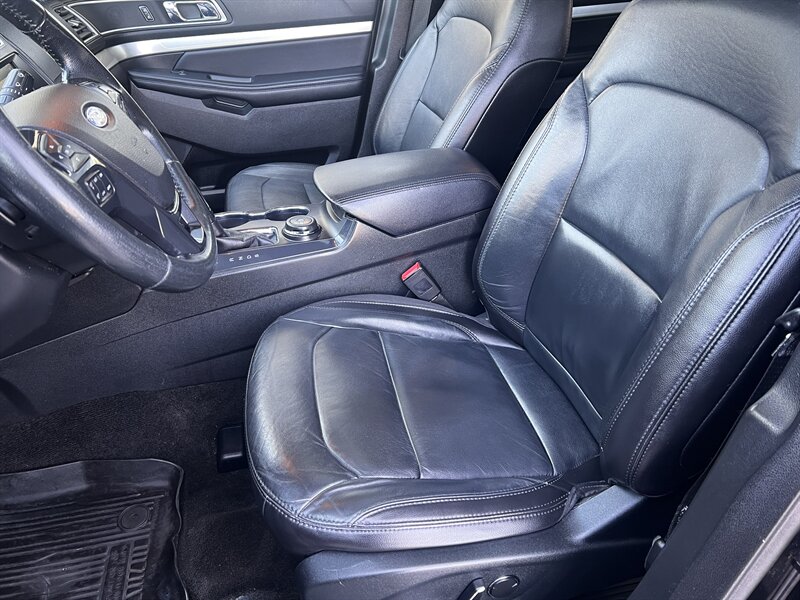 2017 Ford Explorer XLT finished in Shadow Black with Ebony Black leather seating, powered by the factory 3.5L V6 producing 290 hp and 255 lb-ft. This Explorer has under 93,000 miles (average <10,000 miles/year), is in excellent overall condition, and returns an EPA-estimated 16 MPG city / 23 MPG highway.